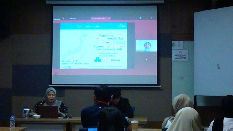 インドネシア国立ハサヌディン大学が開催する栄養と公衆衛生に関するカンファレンス「第3回 国際栄養・公衆衛生会議」において、当社 専務取締役 荻久保瑞穂が登壇し、学校給食や衛生管理に関する当社の取り組みと、NJPPP(栄養改善事業推進プラットフォーム)の支援のもと実施した現地調査とその結果について紹介しました。また講演後には、参加者から寄せられた様々な質疑にお答えしました。